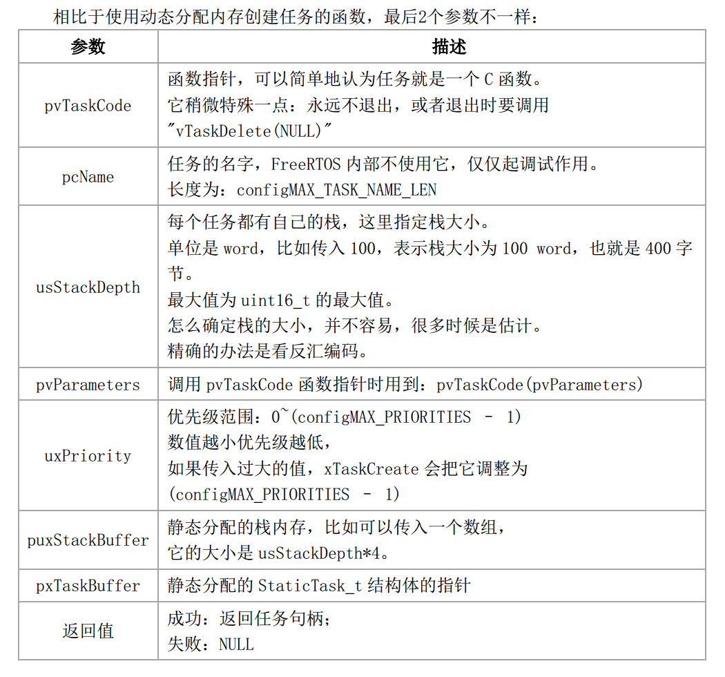 1 | TaskHandle_t xTaskCreateStatic ( |